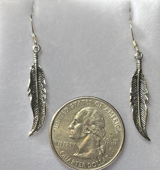 Sterling Silver Feather Drop Earrings