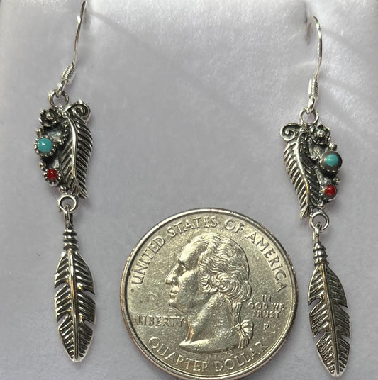 Sterling Silver Turquoise Earrings with Feather Drops