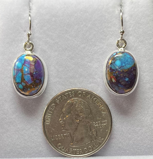 Sterling Silver Oval Copper Turquoise Drop Earrings