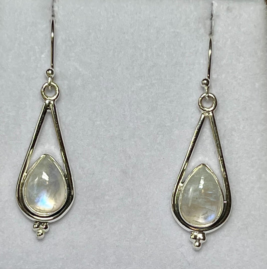 Teardrop Rainbow Moonstone Sterling Drop Earrings