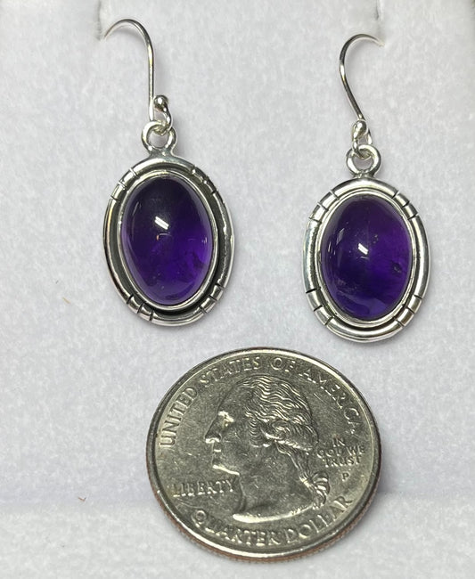 Sterling Silver Smooth Amethyst Drop Earrings