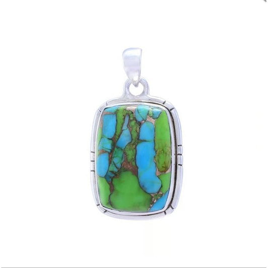 Sterlling Silver Green Copper Truquoise Rectangular Pendant