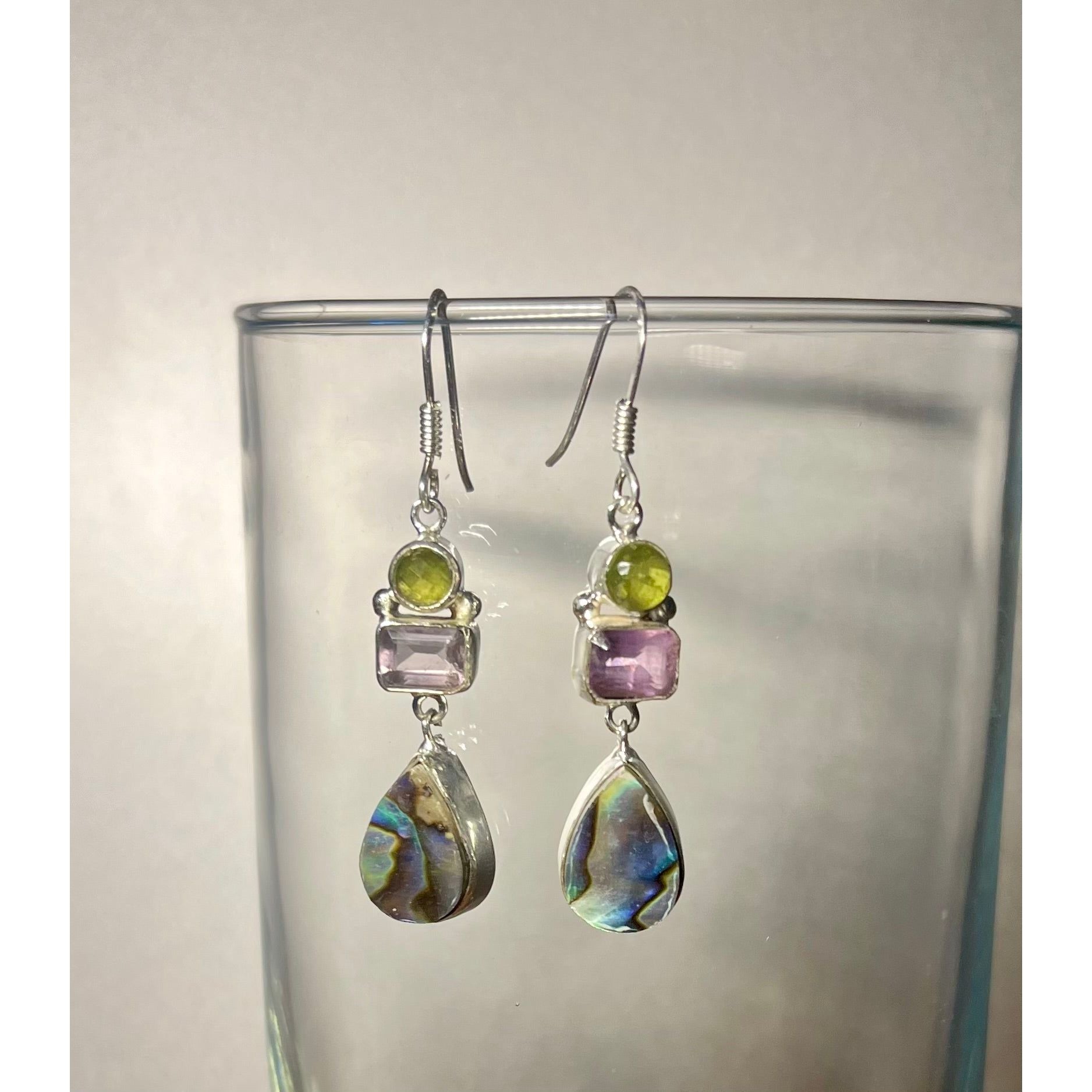 Amethyst, Peridot and Abalone Shell Drop Earrings
