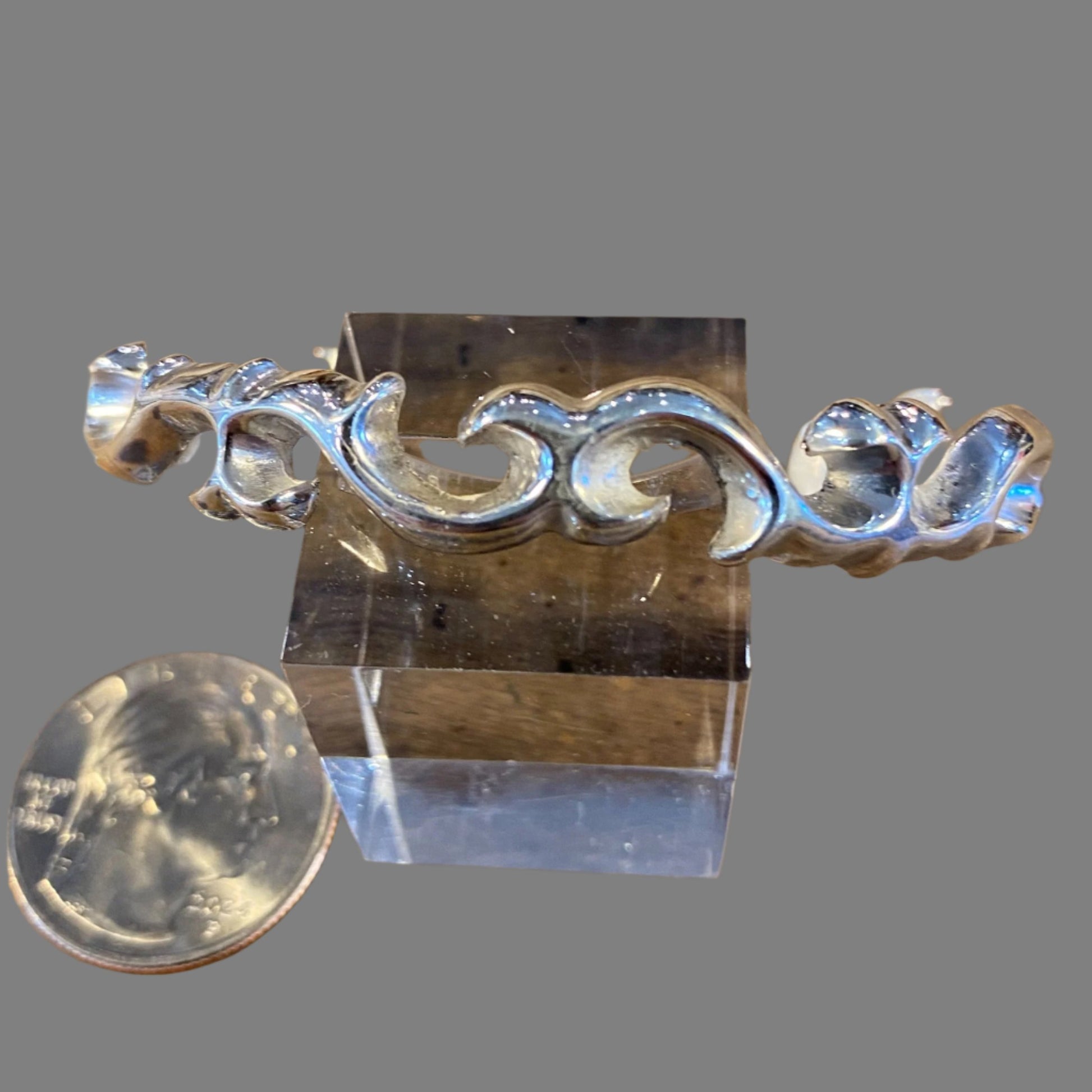 Ladies Traditional Style Swirled Sand Cast Sterling Cuff Bracelet-B41