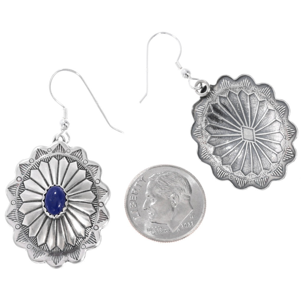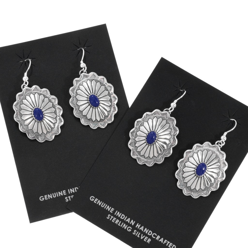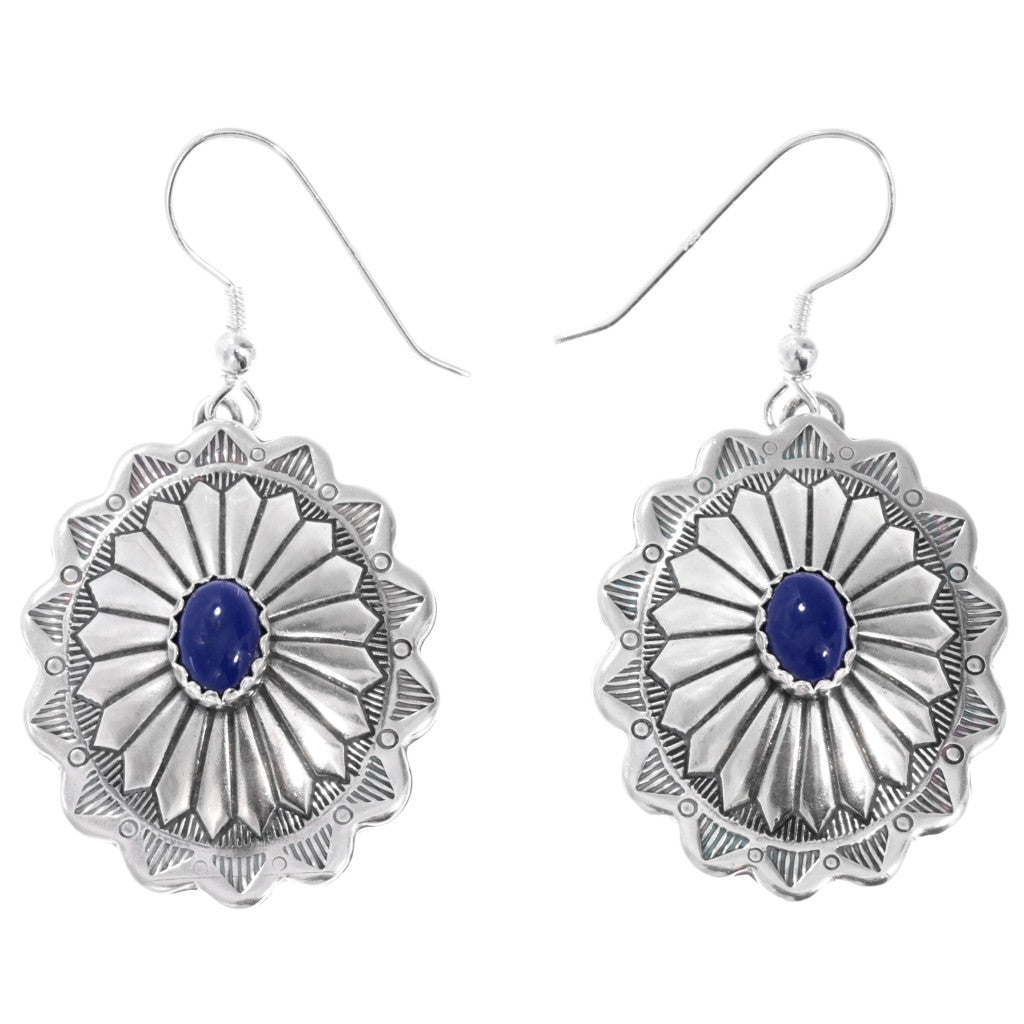These lovely concho earrings with French hooks sport a centerpiece of rich blue Lapis.
