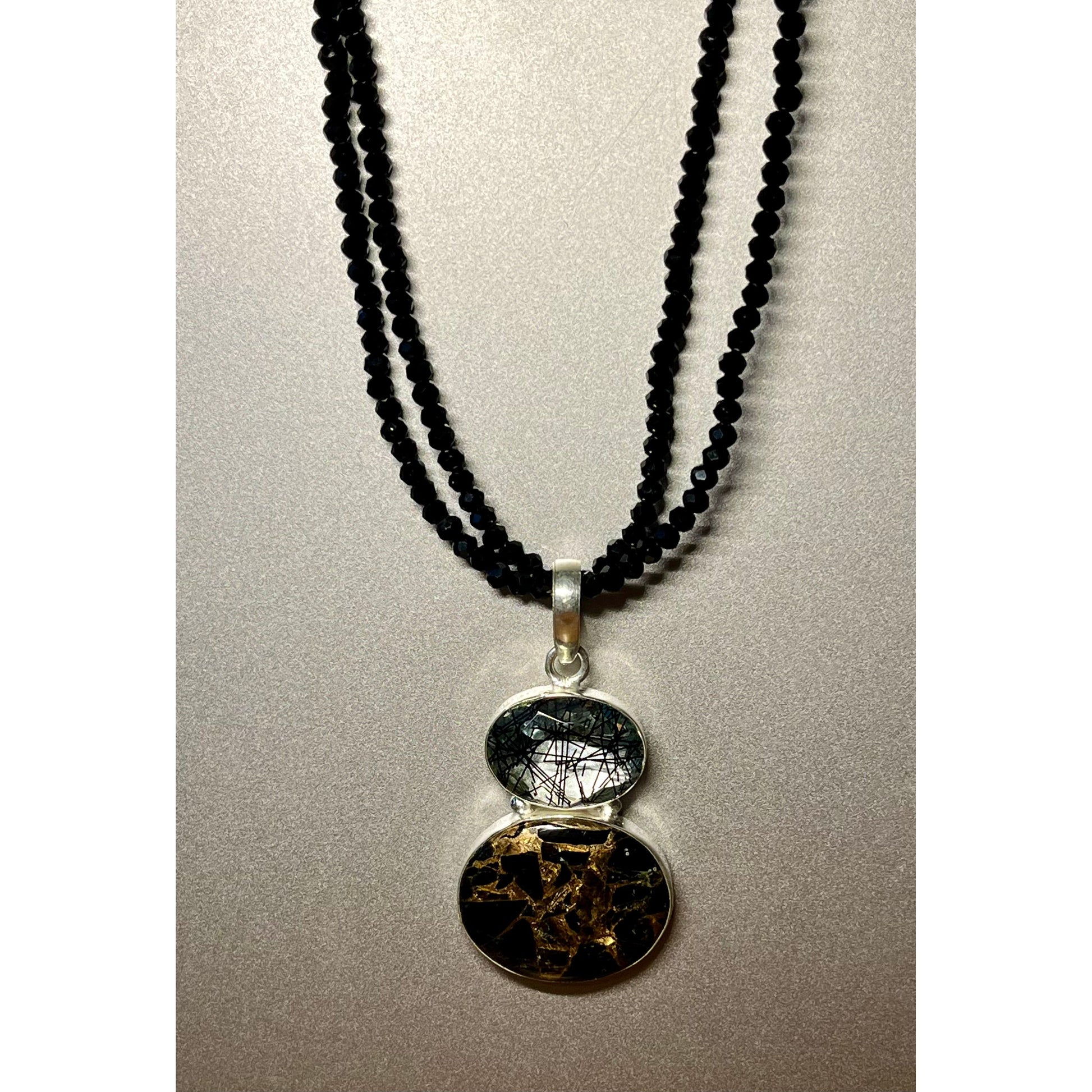 Rutilated Quartz and Copper Obsidian Pendant on 20" Bead Chain