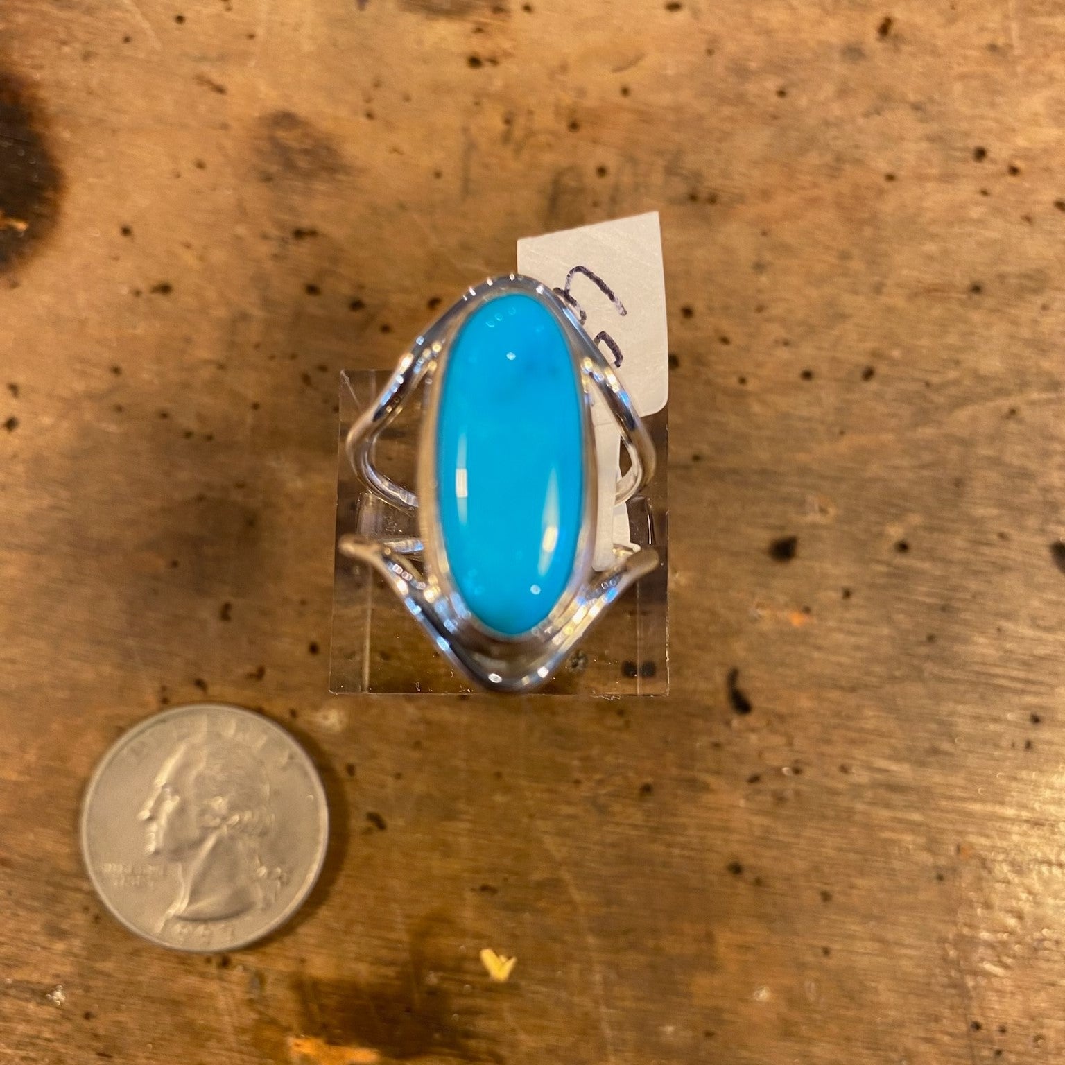 This sky blue ring has the same depth of color as a cloudless summer sky. These open rings are perfect for hot weather as they are airy and quite comfortable. Their smooth elegant finish will embellish all of the summer blues in your wardrobe.