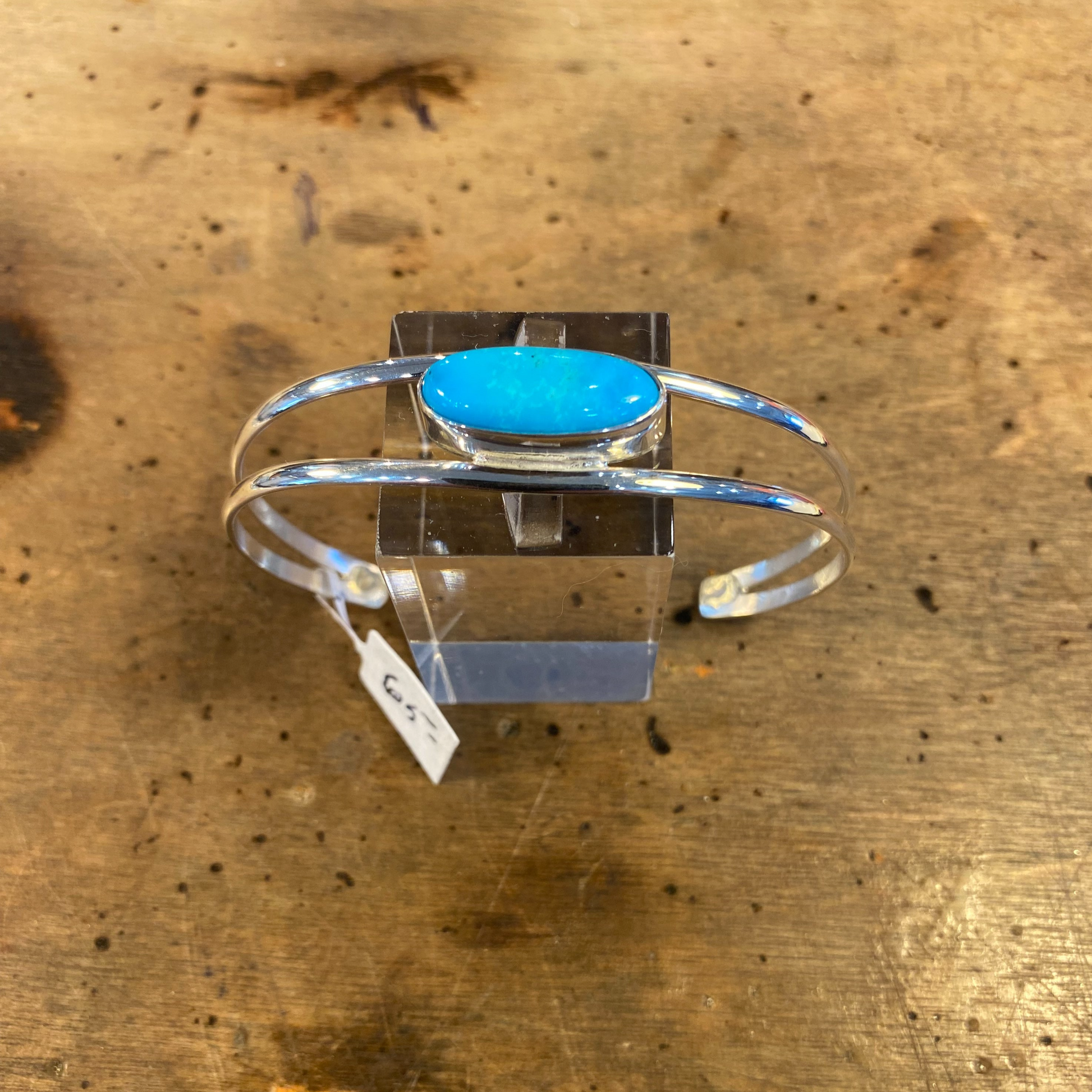 Sleek Horizontal Kingman Turquoise Bracelet. Wear this easily with your favorite jeans or add an elegant but simple flair to your professional attire.