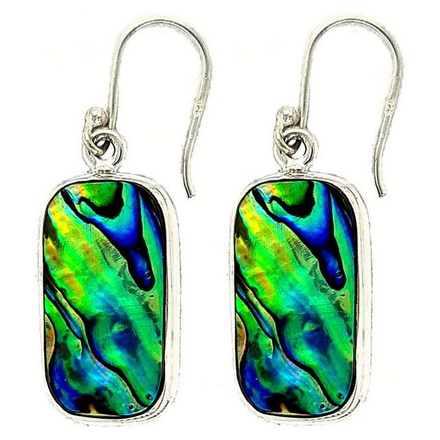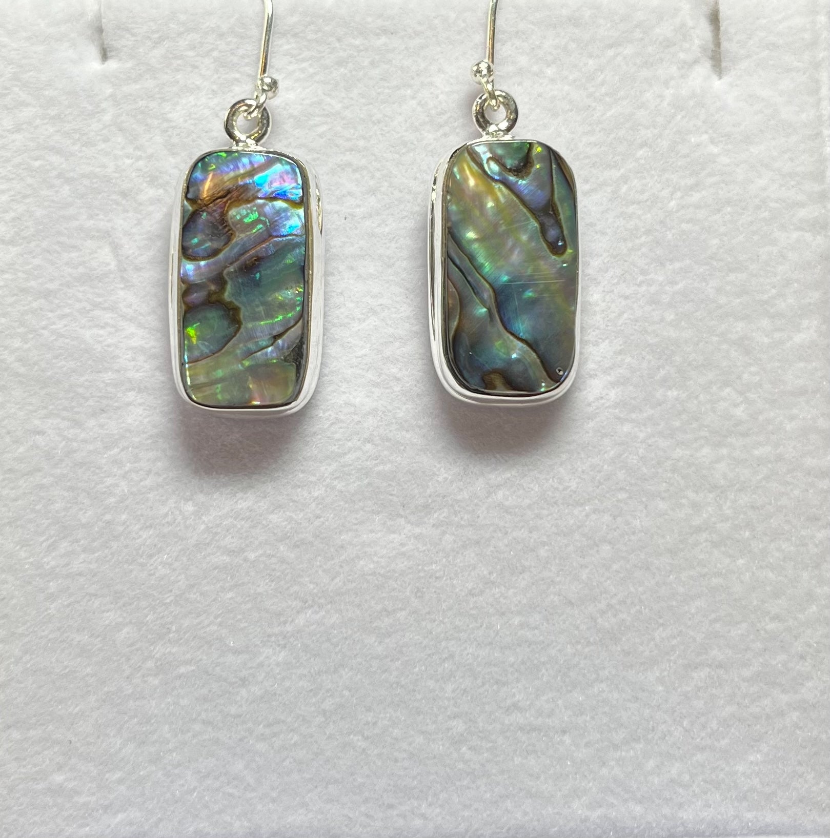 Sterling Silver Rectangular Paua Shell Drop Earrings