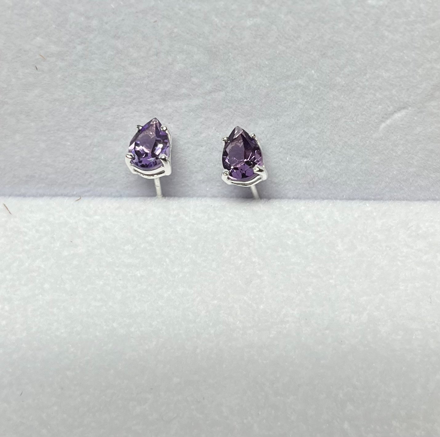 Sterling Tear Drop Amethyst Stud Earrings; 5 X 7 mm