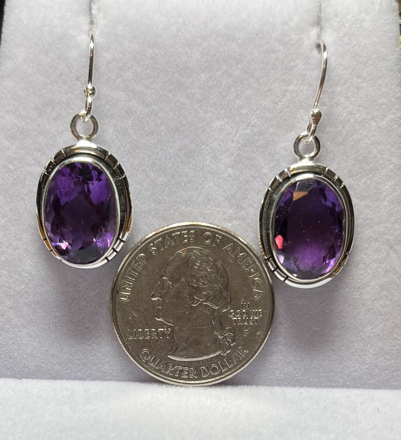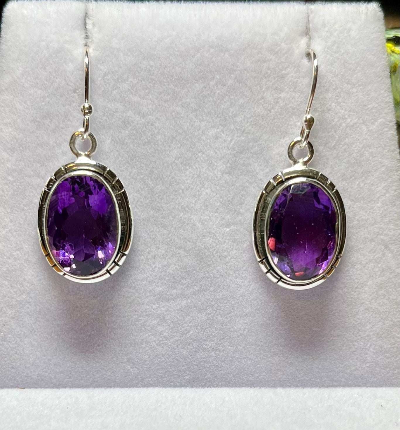 Sterllng Silver Faceted Oval Amethyst Gemstone Earrings