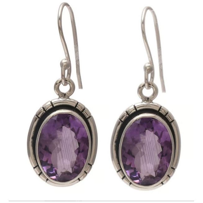 Sterling Silver Faceted Oval Amethyst Gemstone Earrings